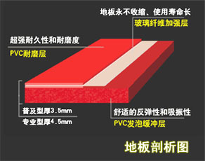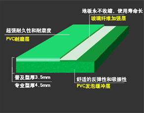 ⒈ 本產(chǎn)品由PVC耐磨層、玻璃纖維加強(qiáng)層和PVC發(fā)泡緩沖層組成。